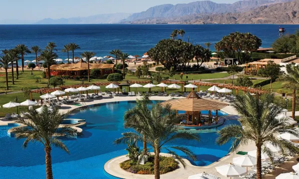Overlooking the Gulf of Aqaba at the meeting point of four countries, it has views of Jordan and Saudi Arabia. Lavish gardens, artfully designed pool areas, as well as numerous restaurants and bars, make it the perfect place for a relaxing vacation. 424 well-appointed and elegantly furnished rooms and a private beach invite you to find your peace of mind in this tranquil and stunning venue. Whether for leisure or business, we can offer you everything your heart desires.Book your getaway and count memories