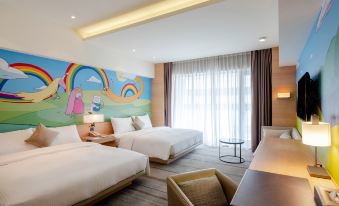+ : Kids friendly hotel. There are cartoon paintings and displays around the hotel. And also Kids play area. My girl enjoyed the facilities. Location is good too, right next to a mall.