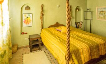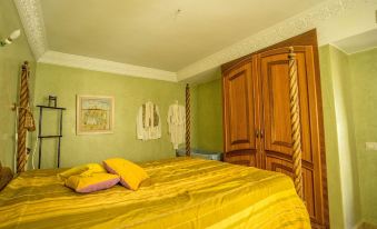 1 Floor. Here you will find the master bedroom with a big canopy (baldakin) double bed in green and yellow colours and then another bedroom with two separate beds.