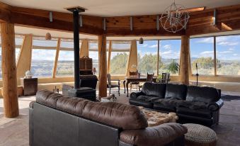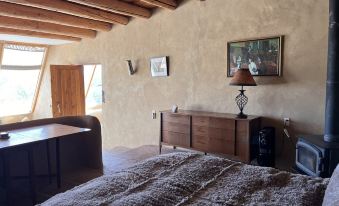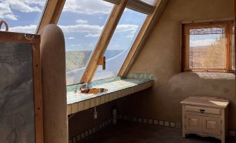 Two beautiful bedroom suites are available in this magnificent 6,500-square-foot earthship (see photos). The second suite is automatically added for parties of 3-4. Should parties of 2 want both suites, book for 3. You will be the only guests during your booking. Dobson House sits high on a hill ringed by mountains overlooking the Rio Grande Gorge. The two suites occupy the entire lower level of the inn and connect to the magnificent living room and gourmet commercial kitchen via a grand underground staircase. Each adobe and Mexican-tiled suite has gorgeous views, a private patio, queen bed, sitting area, bathroom, mini fridge, microwave, and coffee and tea service. Cook meals in the gourmet commercial kitchen. Dine with gorgeous views. Hike, bike, or snowshoe beautiful trails. The rim of the gorge, where you'll find breathtaking views of the canyon and Rio Grande 800-feet below, is a 10-minute hike from your door. Mineral-rich hot springs are a hike away. Gorgeous sunsets and starry skies await. Please note that this exquisite 6,500-square-foot earthship, built to be an exclusive inn, has an innkeeper on premises. My sweet dog, Ruby, and I are here to ensure your experience is exceptional. Wonderfully off the beaten path, vehicles with AWD or 4WD and good clearance are necessary in inclement weather.About pets:No pets allowed, service animals permitted.About checkOut:Check out before 11:00 AM.About children:Adults only.About checkIn:Check in after 4:00 PM.About smoking:Smoking is not permitted.About minBookingAge:Minimum age to rent: 21.About events:No events allowed.