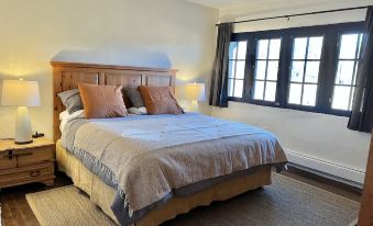 1250 sq ft with a spacious living, dining and kitchen area. Primary bedroom has a king bed, large windows and a TV. Second bedroom has a queen bed, the third bedroom has two twin beds. Hardwood floors, kiva fireplace, two skylights, 50 GB fiber internet service and two parking spaces are just outside the door.