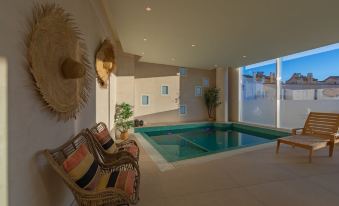 Yes, Beautifully designed 2 bedroom apartment with terrace an communal spa has a pool.Does Beautifully designed 2 bedroom apartment with terrace an communal spa have a swimming pool?