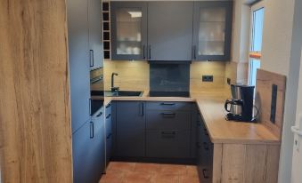 This is a bright, child-friendly holiday home (64 m²) with a wonderful view from the terrace (sunny side!) from which your car parking space is visible. On the terrace you can z. B. have a leisurely breakfast. The rolls are hung from the bakery until 8:00 a.m. directly on the front door. Payment for this in the hotel directly opposite. Daily newspapers can be supplied on request. The beach is only about 900 m away. Through the additional windows in the living area, toilet and the 2 bedrooms, this apartment is flooded with light. The house is at ground level and suitable for 4 to 5 / maximum 6 people. There is also a fully equipped kitchen with dishwasher, oven, fridge with freezer, coffee machine, toaster, etc. The apartment has satellite flat TV and stereo. Right behind the house is a large lawn with seating and a fireplace grill. You can park bicycles directly at the house. Nothing stands in the way of your deserved Baltic vacation.