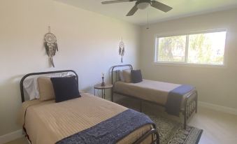 We loved our stay at the hilltop home. The shared spaces and bedrooms were all big enough for my big family. Lots of rentals prioritize bedroom space, but have very little kitchen and living room space. This home has adequate space for everyone to eat together and relax together after a long day of hiking, which we loved. My kids really loved seeing the bunnies and bluebirds in the yard. A couple of small imperfections: the downstairs master bedroom door doesn't close all the way. And there are no fans in the bathrooms. These things didn’t bother us much, as the rest of the home was so comfy. And the views from the home are spectacular.