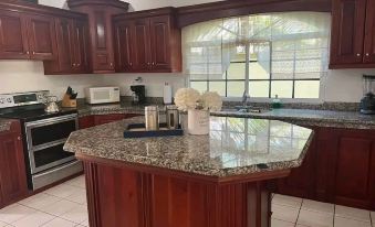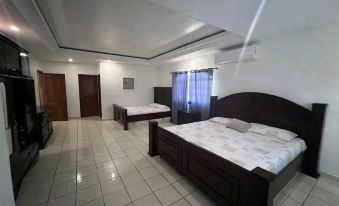 Tela is waiting for you at this 4-bedroom house. This amazing property features 1 king bed and 4 queen beds, perfect for a group getaway. With amenities like a washing machine, WiFi, and AC, guests can relax and unwind. The 4 bathrooms with showers provide convenience and comfort. Experience what Tela has to offer with a stay at our house.About pets:No pets allowed.About checkOut:Check out before 11:00 AM.About children:Children allowed: ages 0-17.About checkIn:Check in after 2:00 PM.About smoking:Smoking allowed: in designated areas.About minBookingAge:Minimum age to rent: 18.About events:No events allowed.