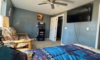 Outside, there is a large deck where you can relax and soak up the sun, as well as a BBQ grill for cooking up some delicious meals. You'll also have access to a fire pit, perfect for roasting marshmallows and sharing stories with friends and family.