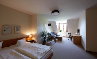 Прекрасный уютный отель в 3 минутах ходьбы от главной площади города. Номера чистые, завтрак прекрасный, персонал заботливый. Уже второй раз тут, и очень довольны. Есть кулер с питьевой водой. Очень вкусный самодельный джем на завтрак!