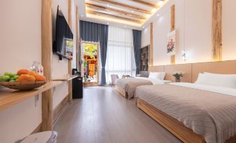老闆和老闆娘人特別好,如果是開車的話,可以讓老闆騎自行車到那個景區門口接你們,因為他們店稍微有一點點不是好找。出去,去玩的話,老闆還會開那個電瓶車接送,老闆娘做菜也挺好吃的,收費也非常的合理,物美價廉,房間特別乾淨,空間也很大,床品都很乾凈,住起來非常非常舒服。老闆娘人也挺好的,還幫忙就是收衣服啊,晾衣服什麼的。因為我們是淡季去的,老闆娘看我們三個人還免費幫我們升級了大床大房間,房間全是智能家居。早飯也是免費的,還因為我們需要早起,老闆娘特地早起做飯還來敲門提醒我們。老闆娘家的小貓咪也很可愛。