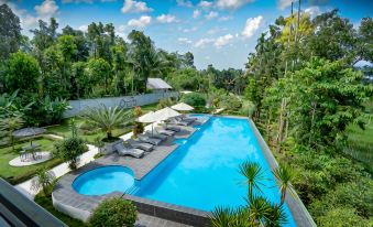 Nice atmosphere and very friendly staff. We stayed here 2 nights too see the waterfalls and rice fields. The hotel has a beautiful infinity pool. The food is excellent! The special noodle soup and chicken curry are recommendations. Had a real good time here