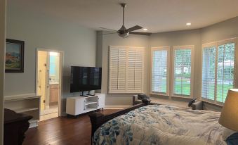 A secondary bedroom featuring a King-size bed, Smart TV and offers its own Walk-in closet, and ensuite bath featuring a new JAPANESE STYLED toilet and walk-in shower.