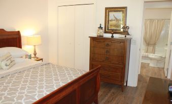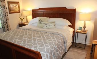 Stay Awhile Cottage is perfect for one or even two couples: It features TWO king bed master suites, brand new plank floors throughout, and tasteful furnishings to keep you comfortable and cozy. You will feel right at home as you walk in the door. Relax in the open and sunny living room, or on the large, breezy lanai, which is screened and with windows for year round comfort.