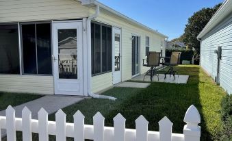 Location! We’re a five minute golf cart ride to Spanish Springs Town Square and a ten minute ride to Lake Sumter Landing. Let the fun begin!About pets:Pets allowed: dogs less than 20 lbs per pet (limit 2 pets total).Small dog only. Sorry, no cats..About checkOut:Check out before 10:00 AM.About children:Children allowed: ages 0-17.About customRules:Golf cart must be kept in garage when not in use..If it is determined that anyone has smoked anywhere on the property, a fine of $1,000.00 will be assessed. This includes vaping..About checkIn:Check in after 4:00 PM.About smoking:Smoking is not permitted.No smoking anywhere on property..About minBookingAge:Minimum age to rent: 45.About events:No events allowed.