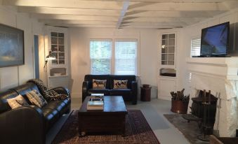 The spacious living room has an original iron stove and wood burning fireplace, comfortable leather sofas, large flat screen with Blu Ray player and internet for downloading movies and accessing Netflix (not connected to cable or satellite). You will need to bring your password. There is also a large selection of DVD's. The kitchen overlooking the private rear garden features granite counter tops, farm sink, and quality appliances. Adjoining the kitchen is a dining room with vintage wood dining table and seating for up to 6 people. There is also a bright and sunny breakfast area with large sliding glass doors opening onto the rear garden.