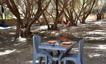 Excellent accueil, au milieu d'une palmeraie et d'oliviers. Expérience de la tente satisfaisante, très confortable. Nous avons assisté et eu les explications de l'irrigation de la source par Valérie qui organise des sortie Quad.