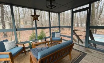 This thoughtfully designed Chalet is centrally located at the heart of Pocono Mountains in the beautiful Locust Lake Village. The home features 2 bedrooms/ + 1 King size loft bedroom and 1 bath with all the modern amenities your relaxing vacation requires. Enjoy your modern kitchen, cozy up on the large RH sofa for a nap, movie night on the 55” Samsung smart TV, read a book or play games on the large screened porch, BBQ on your Weber grill, soak in the hot tub, or take a short walk to the Villages many amenities.