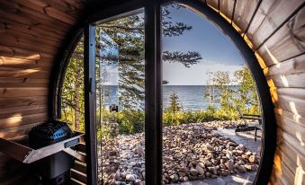 Kalliot: Lakefront Tiny A-Frame w/Barrel Sauna + EV Charger