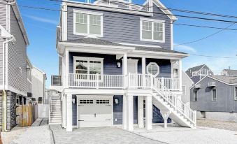 Our whole family enjoyed staying at this beautiful and comfortable home. On the bay with sunset views, we had happy hours on the rooftop deck and morning coffee on the front porch. Inside, the bedrooms and common areas were spacious, clean and well appointed. We loved the patio and gas grill while playing corn hole and ping pong in the basement playroom. Getting from the bay to the ocean was easy and direct, walk in ten minutes or drive in two. There was plenty of beach gear including chairs, an umbrella, and a beach wagon available to use. The owners were accommodating and friendly, making our stay easy and effortless. A truly lovely home away from home!