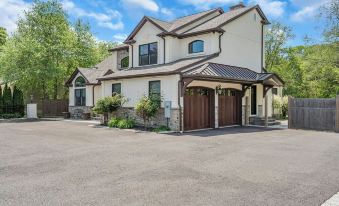 Tucked along a serene flowing brook stocked with fish, this exquisite home offers the ultimate in relaxation and entertainment. Featuring 3 bedrooms and 2.5 bathrooms—including a luxurious spa-like primary suite—you'll enjoy the perfect blend of comfort and elegance. The master bathroom is a spa-like sanctuary with a steam shower and heated marble floors for cozy comfort. The secondary bedroom has a queen size bed and walk in closet. Bunk bed room features a full over queen- all new mattresses.