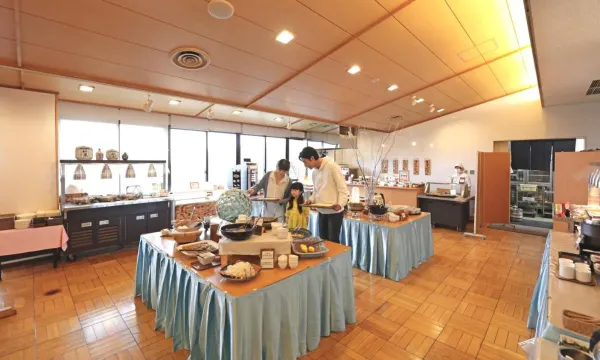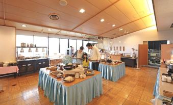 Buffet and Asian breakfast options are available every morning at Kyukamura Takeno-Kaigan.
