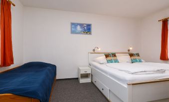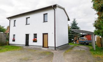 3-family house "Volkmann". In the resort 200 m from the centre of Trassenheide, 1.6 km from the sea, 1.6 km from the beach. Parking on the premises. Supermarket 180 m, restaurant 200 m, bakery, café, bus stop 180 m, railway station 800 m, sandy beach 1.6 km, thermal baths "Bernsteintherme" 3.5 km. Golf course (18 hole) 29 km, surf school 3.5 km, tennis 3.3 km, minigolf 3.4 km. "Volkmann App. 2", 2-room apartment 45 m2, on the upper floor. Cosy furnishings: living/dining room with satellite TV (flat screen). 1 room with 1 bed and 1 double bed. Kitchenette (2 ceramic glass hob hotplates, toaster, kettle, microwave, electric coffee machine). Shower/WC. Electric heating. Parking (1 car) at the house. Please note: non-smokers only. Smoke alarm.