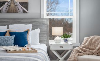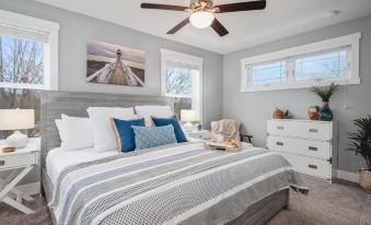 This Traverse City home boasts three beautifully appointed bedrooms to come home to after exploring the area. The master bedroom is equipped with a king-sized bed and a private ensuite bathroom. If you are traveling with a young one, you will find a Pack-n-Play crib and a highchair in the closet. The second and the third bedroom both feature queen beds.