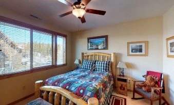 In the living room, guests will find a cozy living room furnished with plush seating, a flatscreen smart TV over a large, gas fireplace. It’s the perfect room to curl up with the family around the fire, stream your favorite series, play a game or enjoy a nightcap and watch the snow fall. On the small private deck, you can enjoy a cup of coffee or an evening drink in the warmer months. The small four-person dining table adjacent to the kitchen is ideal for sit-down dinners and the full kitchen offers guests ample space to whip up their favorite meals or their morning cup of coffee. Plus, the bar seating is perfect for a casual breakfast, coffee or somewhere to perch with a glass of wine to keep the chef company while they work!