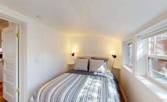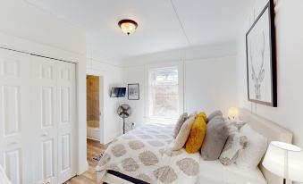 As soon as you step into the home, you'll be greeted by its bright and airy atmosphere. Many charming heritage features have been preserved, like the vintage door knobs to the character windows. The living room is a great hangout spot for talking, games, or movie nights. With tasteful decor and plenty of natural light, it's the perfect place to unwind after a long day of exploring.