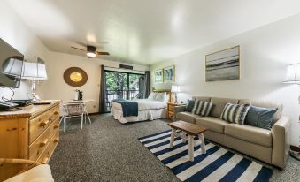 Our units are equipped with various amenities to cater to your needs, including free internet access, a sofa sleeper, flat-screen television with Direct TV service, a mini refrigerator and microwave, a coffee station, a fan, a hair dryer, and an iron and ironing board, ensuring you have everything you need for a comfortable stay. Please be advised that we do NOT offer mid-stay housekeeping services at Donner Lake Village.