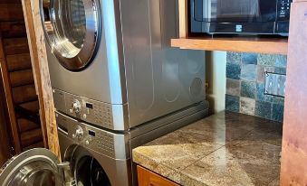 Take in the peaceful surroundings from the large outdoor patio, perfect for morning coffee or evening barbecues. Soak your cares away in the private hot tub under the stars and enjoy the fresh mountain air and stunning forest views.