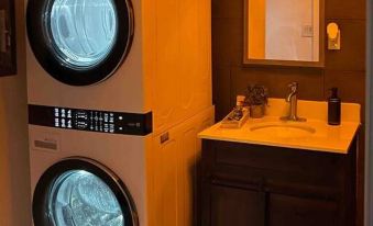 The highlight of this suite is the bathroom, which contains a laundry station with washer and dryer , and a Bluetooth controlled light which has 3 different light openings and can connect to your device to play music!!