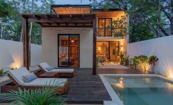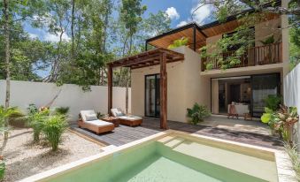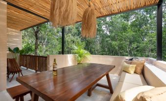 Conveniently situated just 4.5 miles / 7.2 km from the white sandy beaches of Tulum and the turquoise waters of the Caribbean Sea, you'll find yourself within easy reach of the beach clubs and the night life of Tulum's renowned restaurants, vibrant nightlife, and eclectic shops. Ancient Mayan ruins and breath-taking cenotes are also nearby, offering a fascinating glimpse into the area's rich history and culture.About pets:No pets allowed.About checkOut:Check out before 11:00 AM.About children:Children allowed: ages 0-17.About checkIn:Check in after 4:00 PM.About smoking:Smoking is not permitted.About minBookingAge:Minimum age to rent: 21.About events:Events allowed: family gatherings, birthday parties, weddings.Maximum event attendees: 20.