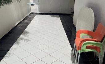 Comfortable and spacious house with a big terrace ,a well equipped kitchen , 2 bathrooms with 1 bathtub and a private parking spot.