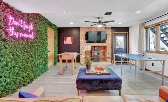-Game Room: Ping Pong table, Foosball table, 55-inch HDTV with Roku (bring your own login and enjoy any app) , LED sign with green wall (Perfect spot for photos) , Mini Bar, Board Games, Fireplace, Sofa.