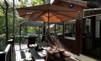 Welcome to out cozy newly renovated family friendly Arbor House 🏡 You will have the privacy and beautiful view from our sunroom! Spacious deck, hammock and fire pit will let you enjoy the nature 🪵 🦌 🐿 🦔 🐾 and fresh air. 🌤 💫 🌿 We are located in heart of Poconos! It is a prime location in Emerald Lakes (non- gated) Community featuring 6 Lakes, 2 pools and indoor/outdoor activities. You are just minutes away from lakes, Kalahari Water Park 👙 Camelback ski resort ⛷, hiking, Mount Airy Casino 🎰 💰and The Crossing Premium Outlets 🛍. Arbor House has a great vibe and it is a perfect getaway spot for family and friends to enjoy the Poconos! Full kitchen, 3 bedrooms with a loft, 2 full bathrooms and sunroom will make you stay super comfortable in our house 👨👩👧👧 👫 👬 Also includes 65” 4K Smart TV with Netflix subscription ,WiFi, Washer/Dryer, 8-player Poker/Black Jack table top and chips, table games, toys for kids and high chair, propane grill , outdoor sauna and 7 person 90 jets brand new hot tub!!! Arbor House has everything you can possibly need for your stay! Fresh new linens, beddings, individual toiletries, outdoor blankets, table oven, toaster, coffee maker, food processor, coffee, tea and kitchen supplies that you will need! Just bring your food and enjoy!!! 🍢 🍔 🥩 🍉 🌽 🍹 🧃About pets:No pets allowed.About checkOut:Check out before 11:00 AM.About children:Children allowed: ages 0-17.About checkIn:Check in after 4:00 PM.About smoking:Smoking allowed: in designated areas.About minBookingAge:Minimum age to rent: 25.About events:No events allowed.