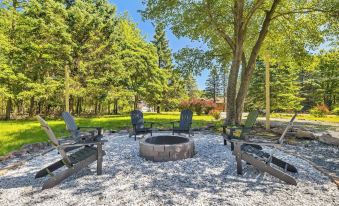 ✔ Outdoor large fire-pit area with 6 Adirondack chairs for a peaceful evening by the fire.