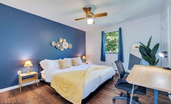 Bedroom 1: King Bed (1st floor) w/ attached full bathroom, Window AC unit