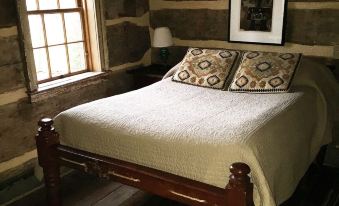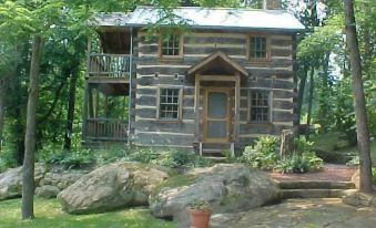 Enjoy a truly unique lodging experience in this relocated and resurrected c. 1820 log house and c. 1840 addition. Moved from Coshocton County, Ohio to our location in Tuscarawas County, the main structure recreates a pioneer atmosphere with authentic period furnishings and a romantic cooking fireplace. The adaptive reuse of the timber frame addition combines historic and contemporary aesthetics with modern conveniences.