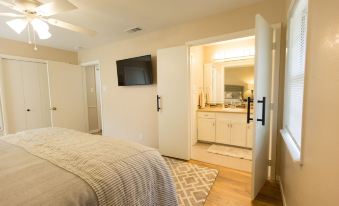 Whether you're visiting Tyler, Texas for business or vacation, the Sherry Lane house offers all the amenities. There are three bedrooms each with their own large closet. The master bedroom has a private bathroom with modern walk-in shower and large TV. The living room includes a TV with reclining loveseat chairs perfect for lounging, along with a large armchair providing plenty of space for company. The dining room has a contemporary light fixture that gives ambiance to any dining party. The kitchen is equipped with restaurant quality appliances, coffee bar, and a bar top with three bar stools as well as a TV. The kitchen opens up to a second living area. The second living area has two swivel chairs looking out into the backyard where you can relax with a cocktail. There is also a workspace in the second living area. You have full access to a private backyard. Two car garage. The location is perfect: 3 miles from downtown; 3 miles from the hospitals, less than 2 miles to the Grove Restaurant, 4 miles to UT Tyler, and less than 5 miles from shopping.About pets:Pets allowed: dogs and cats less than 50 lbs per pet (limit 2 pets total).About checkOut:Check out before 11:00 AM.About children:Children allowed: ages 0-17.About checkIn:Check in after 4:00 PM.About smoking:Smoking is not permitted.About minBookingAge:Minimum age to rent: 21.About events:No events allowed.