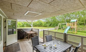 Single-family house, built in 1979. Private: property 1'200 m2, well-kept garden. Terrace (30 m2), barbecue, children's playground (swing). In the house: washing machine, tumble dryer. Parking at the house. Grocery 3 km. The owner does not accept any youth groups. "Elizabeth" - 400m to the fjord", 4-room house 87 m2. Object suitable for 8 adults + 1 child. Living room with TV, radio and CD-player. 1 room with 1 x 2 bunk beds. 1 room with 2 beds. Studio 1 room with with 2 beds and 1 double bed. Kitchen (4 hot plates, oven, dishwasher, microwave, freezer). 2 showers/WC. Terrace 10 m2, roofed. Facilities: children's high chair, baby cot. Internet (WiFi). Please note: non-smokers only. Maximum 2 pets/ dogs allowed. 661-182718