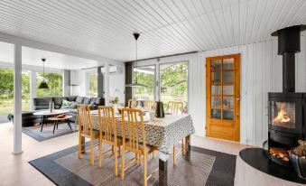 Single-family house, built in 1976. 5 km from the sea. Private: natural state property 993 m2. Terrace (100 m2). In the house: washing machine, tumble dryer. Parking at the house. Grocery 3 km. The owner does not accept any youth groups. "Embla" - 500m to the fjord", 2-room house 78 m2. Object suitable for 4 adults + 1 child. Living room with TV. 1 room with 1 double bed. 1 room with 2 beds. Kitchen (oven, dishwasher, 4 induction hot plates, microwave, freezer). Shower/WC, hydro massage bath. Terrace 10 m2, roofed. Facilities: baby cot. Internet (WiFi). Please note: non-smokers only. Maximum 2 pets/ dogs allowed. 661-182961