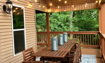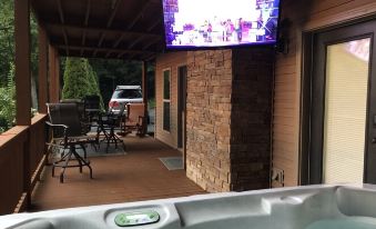 Newly remodeled, Smart home that sleeps 12 on top of Jonas Mountain in north Georgia. 4 bedrooms, 3.5 baths, hot tub, fireplace, fire pit, Weber charcoal grill, dog-friendly, million-dollar sunset views from wrap-around porches, fire table & outdoor living area, two outdoor dining sets, basement with foosball table, Wii, XBOX, Wi-Fi mesh network throughout the home, disco ball, and pool table. The basement game room also has a pull-out bed/couch.