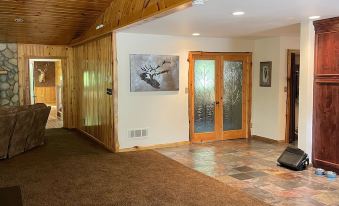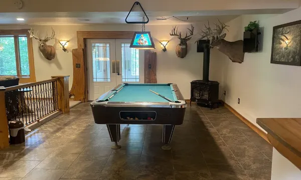 Welcome to Whitetail Lodge at TLC acres. Escape from it ALL! This gorgeous and expansive vacation home offers great lake frontage and a 14 foot pedal pontoon included for your enjoyment. This home has so many amenities and extras, it is hard to list them all. The main home is a mix of luxury and northwoods retreat. Enjoy almost 7000 square feet of luxury living in the main home. Also on the property is a 4 bedrooom apartment allowing plenty of sleeping arrangements for your entire group. Outdoor jaccuzi will help you relax after a long fun day. Enjoy the fully equipped and beautiful workmanship in the kitchen on the main floor connecting to the living room, dining area and poker table. Cooking for a large group? You'll appreciate the second full kitchen on the lower level with another living room along with a pool table. You can listen to the sounds of nature on one of the many large decks around the home. Just steps out the front door is a large firepit where you can enjoy a cocktail while recallling the fun events of the day. Or, step down to the lakeside and enjoy the peaceful serenity of the lake and another fire pit. You can spend hours exploring the 43 acres of wooded privacy that is surrounded by 1,000's of acres of public land. If hunting is your thing, this vacation home is definitely worth checking out. If you prefer motorized fun, our private trails through our woods lead directly to miles and miles of public ATV/UTV and snowmobiling trails. Pence Lake is a small non-motor lake full of Bass, Bluegill, Crappie and Trout, so don' forget your fishing poles! We also have kayaks and a canoe for cruising around the lake. The pedal pontoon is also a great way to find the fish or just enjoy a quiet ride around the always peaceful lake. If pedalling isn't your thing, no worries, you can hook up the trolling motor and buzz around effortlessly. The only problem you'll find is having to leave when your stay is over. We promise you'll want to come back soon.About pets:Pets allowed: dogs less than 50 lbs per pet (limit one pet total).About checkOut:Check out before 11:00 AM.About children:Children allowed: ages 0-17.About customRules:Please be mindful of thermostat (heat/AC) -check windows and doors are closed. OR turn thermostat OFF and OPEN windows/doors.About checkIn:Check in after 4:00 PM.About smoking:Smoking is not permitted.About minBookingAge:Minimum age to rent: 25.About events:Events allowed: family gatherings.Maximum event attendees: 50.