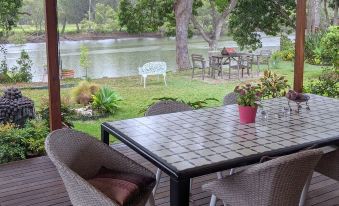 Everyone loves staying at our comfortable and stylish house, Januce, on the river. We have 5 star reviews. Januce is the perfect place to holiday or work from home. Private, with a huge deck looking over the river, comfortable, fast broadband, Netflix, leather couches, comfy beds, air-con, books, games, barb q, full kitchen.