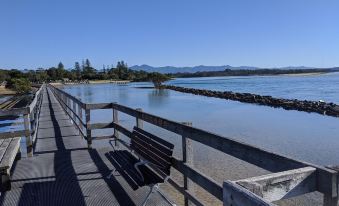 Be surprised! This 3 bedroom 2 bathroom home opens directly onto the Kalang River. The large high ceiling deck is your private viewing platform for watching river life. You can fish or get mud crabs from the back yard.