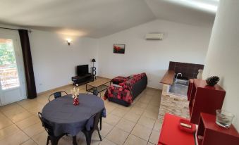 Villa of 70m² with private swimming pool 8X4 meters, fenced, covered terrace and barbecue, 2 bedrooms, fully equipped American kitchen with induction hob and electric oven, bathroom with walk-in shower. The villa is located 3 minutes from a large sandy beach classified by the conservatory of the coast, you have a view of the needles of Bavella, near rivers with natural pools it is located 5 minutes from all shops.About pets:Pets allowed: dogs and cats (limit 2 total).About checkOut:Check out before 10:00 AM.About children:Children allowed: ages 0-17.About checkIn:Check in after 3:00 PM.About smoking:Smoking allowed: in designated areas.About events:Events allowed: family gatherings.Maximum event attendees: 6,Dans le respect du voisinage.