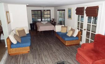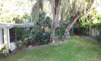 Stay awhile! This is a well maintained older property consisting of 4 bedrooms and 3 full baths. Plenty of beds, enough to sleep 10 people. There are 2 master bedrooms in this house. Plenty of gathering room for family and friends, a pool room with fooseball. There are a washer and dryer in the house as well as a fully functioning older galley kitchen. There is also an in ground, heated, screened in, back yard pool. Carport to park your car. This property is just a short walk from not only the beach (9 minute walk) but also parks, restaurants, the Art Museum, and Riverside Theater. Wifi and Cable included. About pets:Pets allowed: dogs (limit 1 total).About children:Children allowed: ages 0-17.About smoking:Smoking is not permitted.* outside only, if you must.About events:No events allowed.