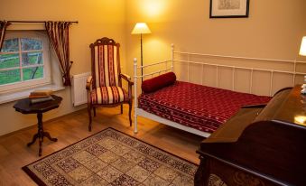 Die Ferienwohnung liegt in dem herrlichen Park des Gutshauses Lobendorf. Die gesamte Anlage ist sehr gepflegt und wunderschön, es gibt viel zu entdecken. Die Wohnung war groß und mit viel Liebe sehr schön eingerichtet. Zu den Schlafzimmern im Dachgeschoss führt eine Raumspartreppe. In der Küche gibt es alles was man braucht. Man kann sehr gemütlich vor dem Haus sitzen und auch ein Grill war vorhanden. Wir hstten hier einen sehr schönen Aufenthalt.