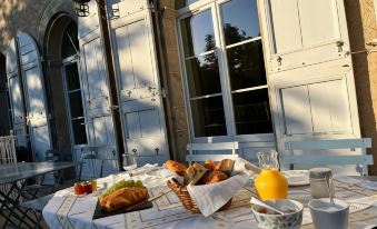 This is an exceptional place to stay. Newly renovated, the Domaine has its extraordinary heritage and character preserved but with the comfort and practicality of modern trimmings (like double glazing and a well-appointed bathroom). Sitting on the terrace for breakfast or dinner, you'll overlook the centuries-old linden trees and the folly at the back of the garden feeling very pleased with yourself. The people making this all possible are the kind, attentive and thoughtful family that host you. And it really is a family – French-Scottish, we met three generations, plus the pets. There is a genuine warmth to their service, and they back it up with skill. The generous breakfast deserves special mention: homemade jams, local honey, perfect croissants and pain au chocolats, fresh waffles, homemade yoghurt etc. And don't go anywhere else for dinner. Enjoy the local products, Emilie's cooking and the view from the terrace after a tough day of being a tourist. (NB parents: we travelled with two young children and were provided with everything we needed, including a large cot, high chair for our toddler and even knitted toys to take home with us.)