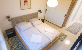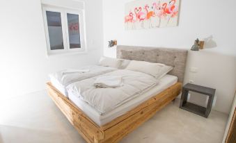 The name of the SunsetLoft resort speaks for itself. At the most beautiful spot on the island of Vir there are sunsets almost every day like in the film. In total, the property has about 2000 square meters in the middle is a main house, SunsetLoft 14, two bungalows on the right and left. The four bungalows and the main house have just been completely renovated and new, modern and high quality. The main house has about 100 square meters on the ground floor and a 45 square meter terrace with a direct view of the sea. In this apartment there are two bedrooms with air conditioning, two bathrooms, and a very large living and dining area. Upstairs is a 140sqm apartment with a large glass front. It has 3 bedrooms, each with a bathroom, a very spacious living-dining area and a large balcony directly to the sea. All furniture was designed by us and the carpenter and manufactured and assembled by the Carpenter Birger from Miesbach.