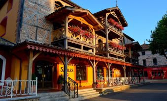 In one of the most beautiful flower-bedecked fleuris villages in France a beautiful wood-framed medieval style building by the river offers you pleasantly decorated and comfortable guest rooms. You can enjoy all the facilities including two outdoor pools the Spa with an indoor pool in an orangery of over 1000 m2 a tennis court parks and gardens three boutiques various restaurants such as the Georges Blanc or the Ancienne Auberge true guardians of traditional family cuisine. Over 20 establishments around the original restaurant have been bought and transformed to embody the concept of Gourmet Village which has now grown to over five hectares.